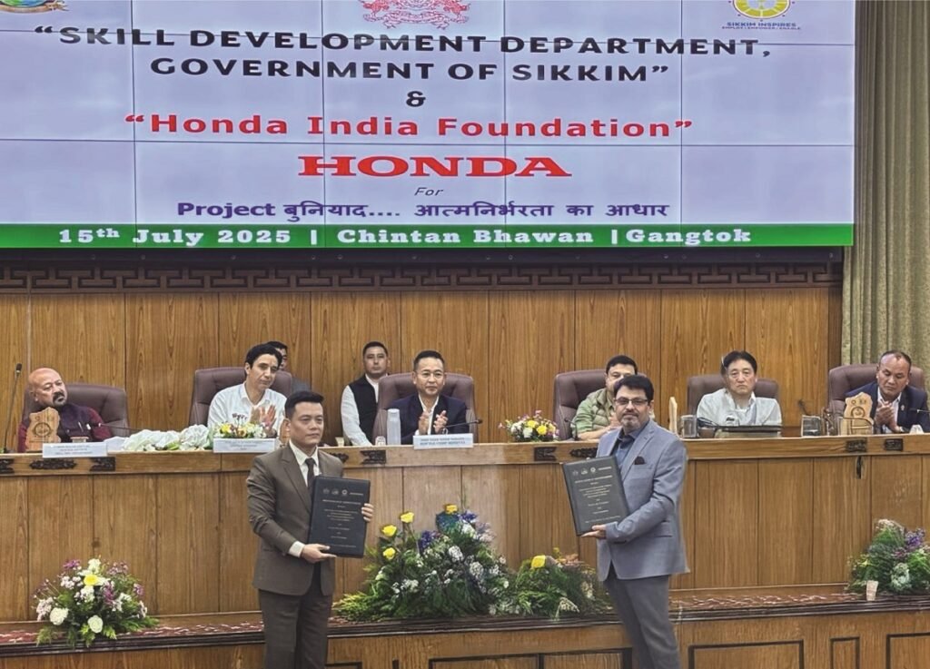 On the occasion of World Youth Skills Day, Honda India Foundation (HIF) launched its flagship CSR initiative, Project Buniyaad, in Sikkim through a Memorandum of Understanding (MoU) signed with the Directorate of Craftsmanship Training & Scheme (DCTSE), Skill Development Department (SDD), Government of Sikkim. The MoU was formalized at Chintan Bhawan, Gangtok, in the presence of Chief Minister Prem Singh Tamang and senior officials from HIF and the state government.